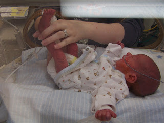Emerson is still about the same. She's being fed 6cc at this point and they have her exclusively on breast-milk because she tolerates it so much better and she didn't lose any more weight yesterday and is holding steady at 2lbs 15oz. She also had her first messy diaper yesterday which is a positive sign that the digestive stuff is starting to work. Haha it was really funny because the nurse showed us the diaper. Who knew we would one day be so excited about a messy diaper.